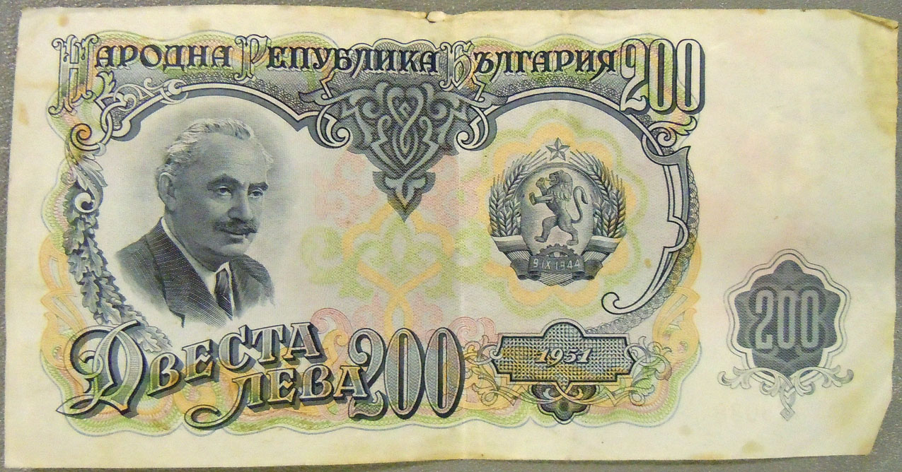 Bulgaria 100 and 200 Leva banknotes dated 1951. Catalog numbers Pick 86 and 87.