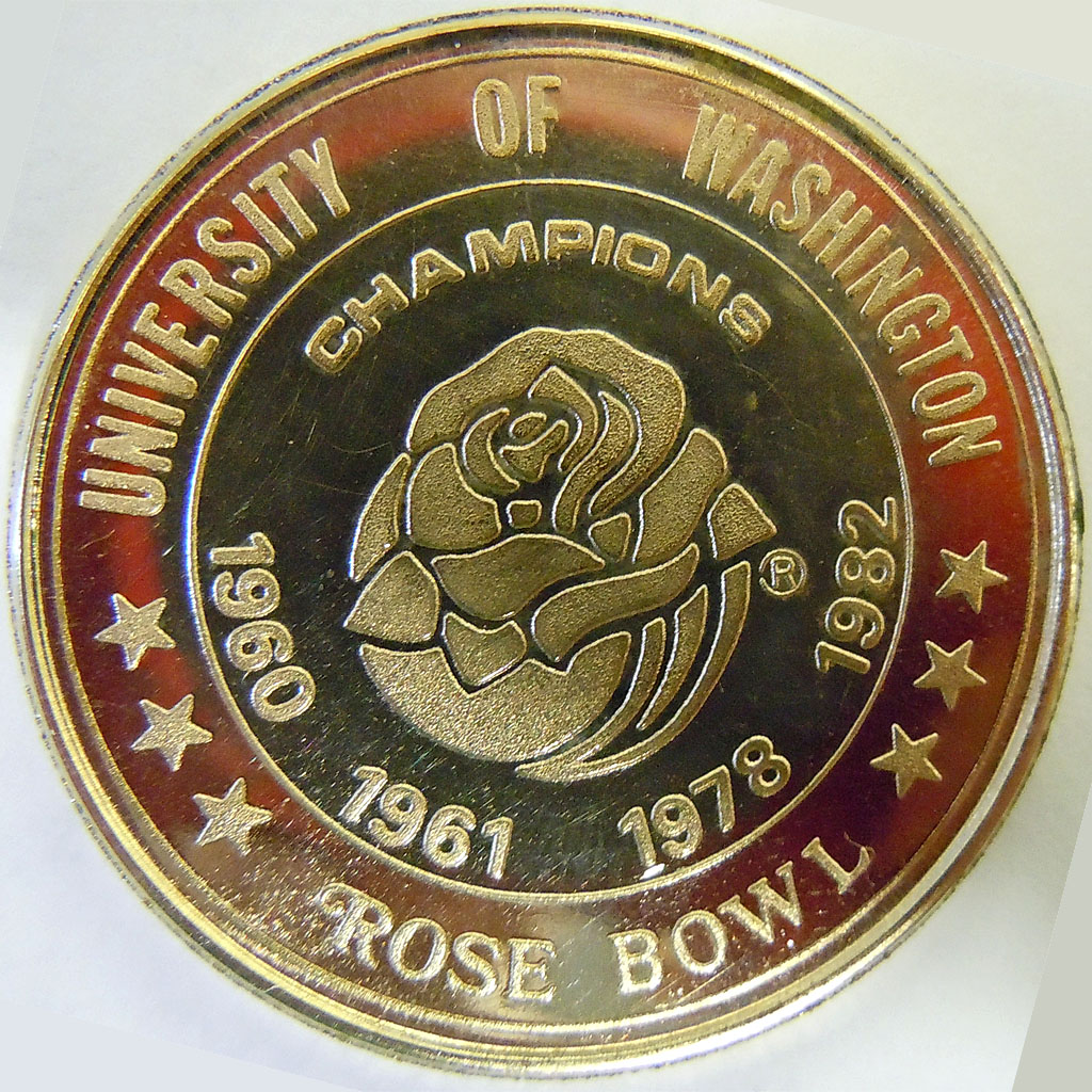 Right: University of Washington Huskies Rose Bowl champions commemorative medal.