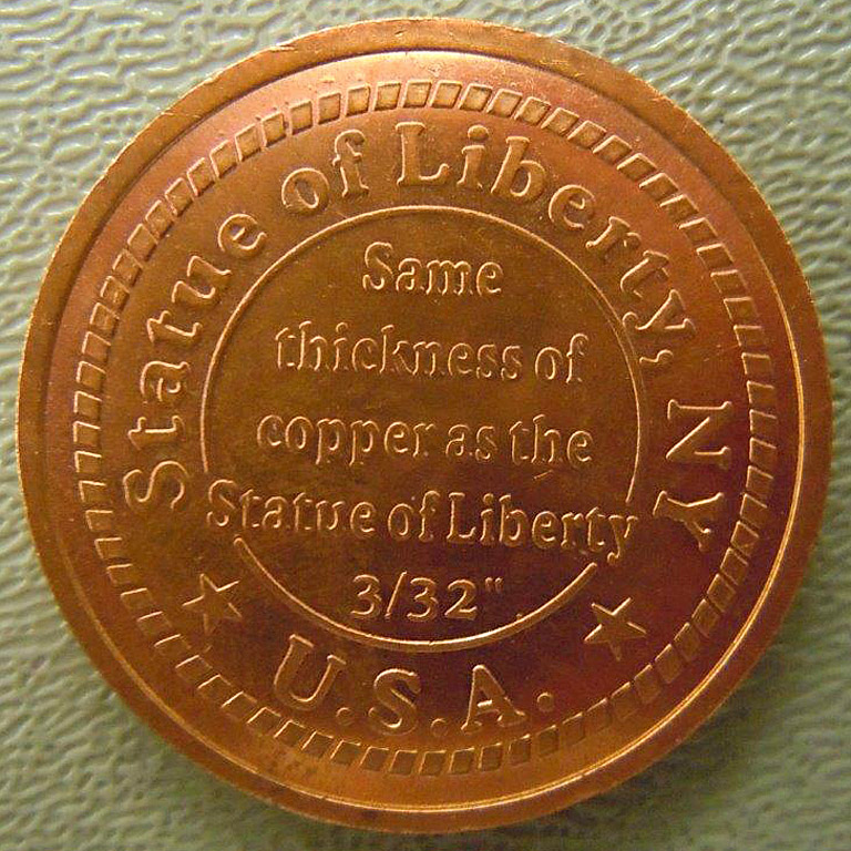 Statue of Liberty copper round; same thickness of copper as the statue (3/32").