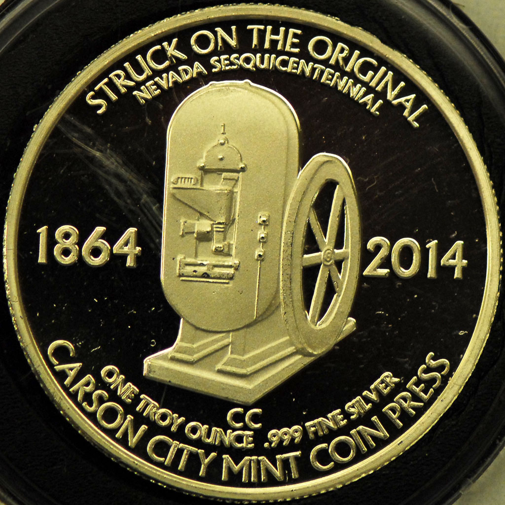 Nevada Sesquicentennial medal struck on the original Carson City Mint coin press.