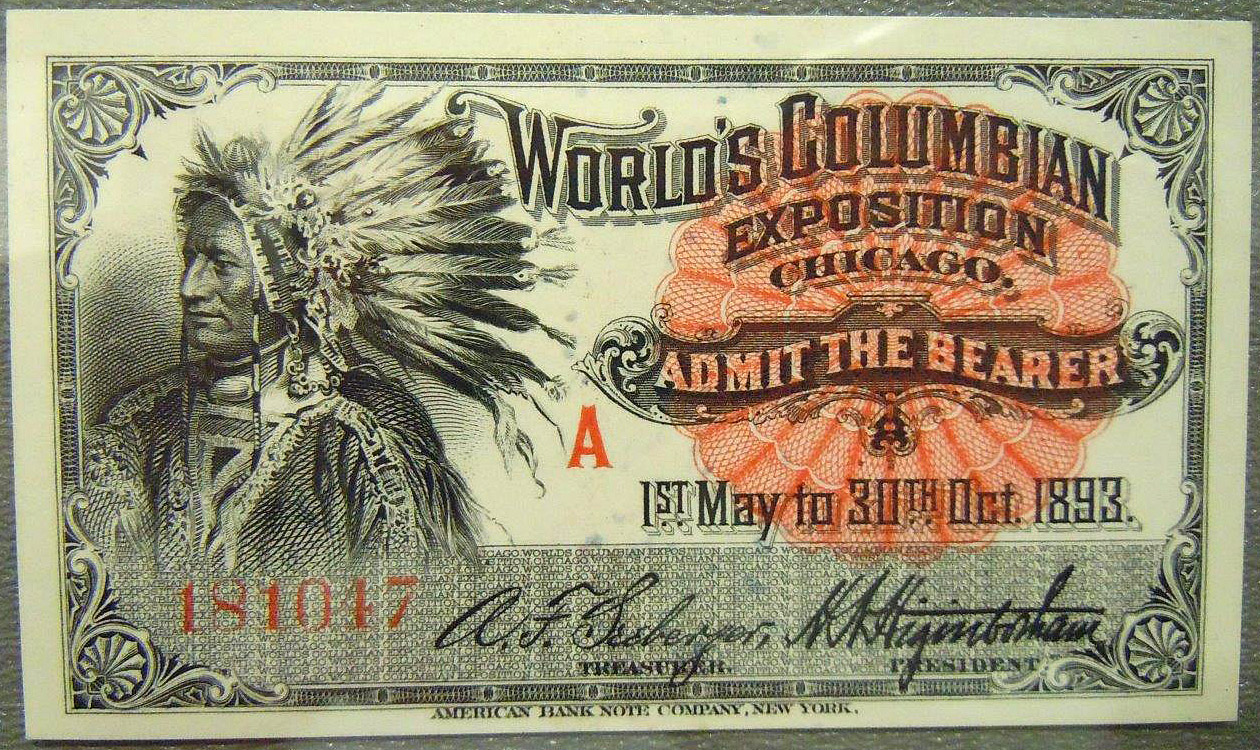 Two 1893 admission tickets to the World's Columbian Exposition in Chicago.