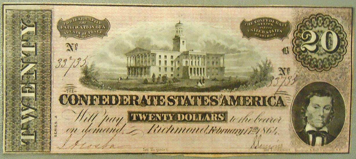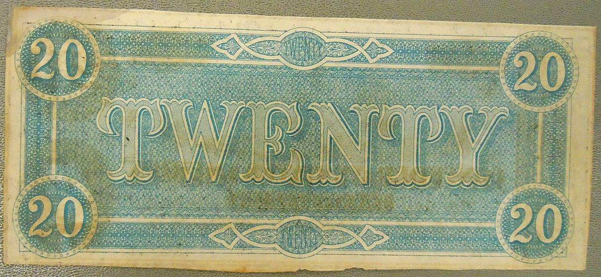 Confederate States of America $20 banknote.