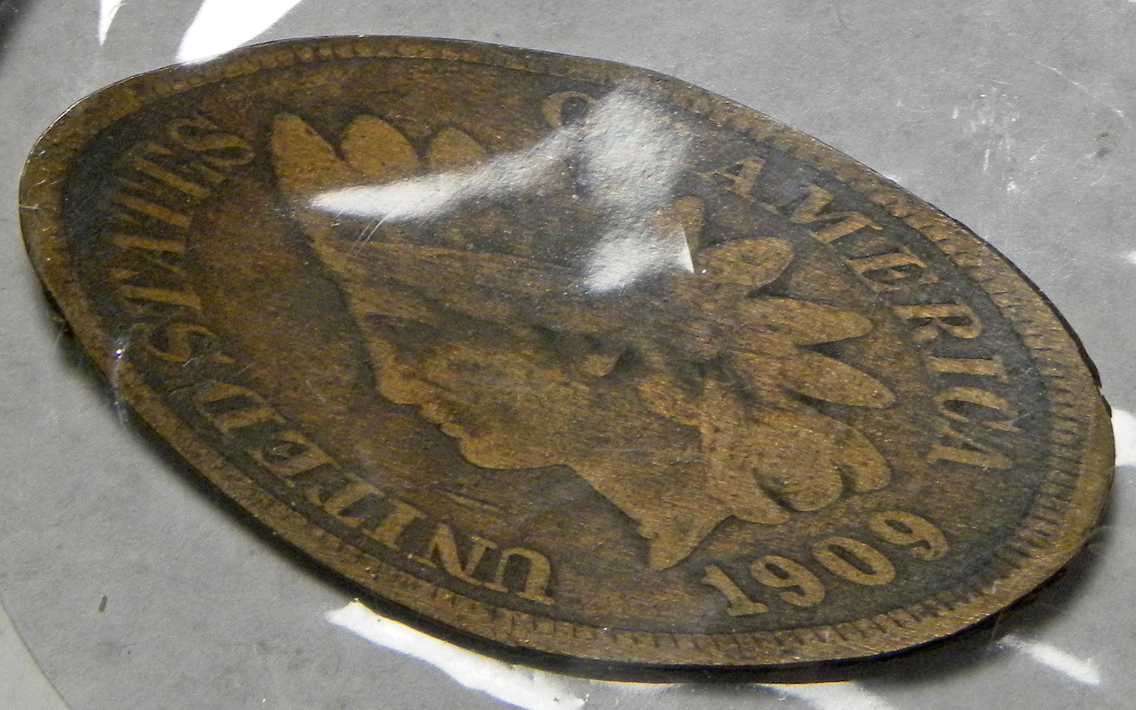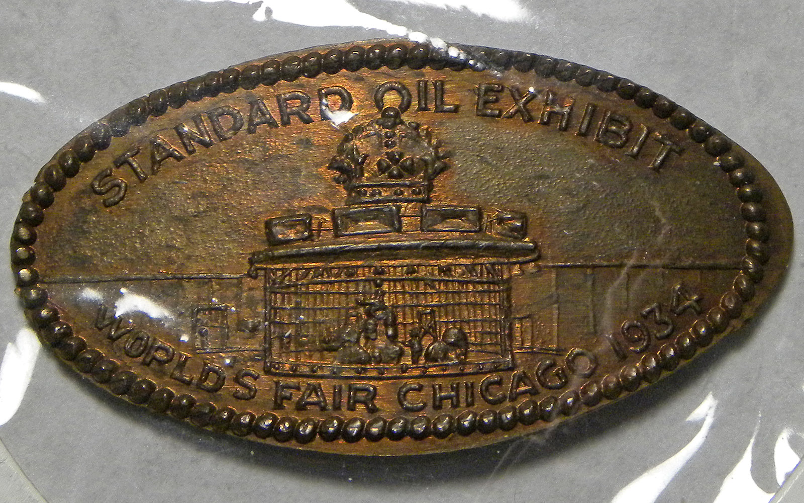 1934 Standard Oil Exhibit at Chicago World's Fair elongated on a 1909 Indian Head Cent.
