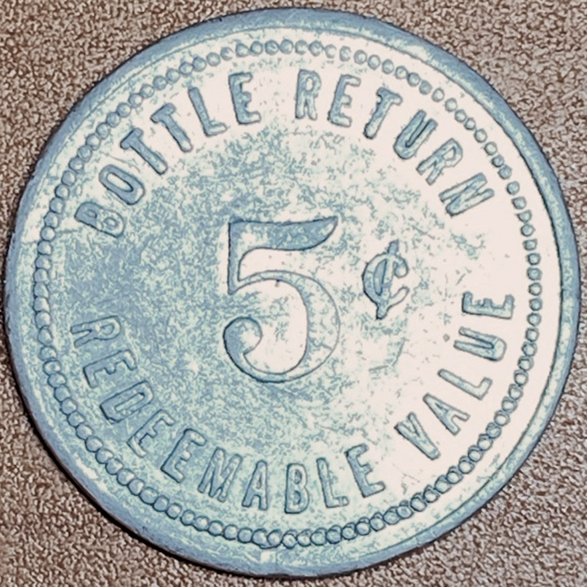 Left: Fort Leonard Wood Post Exchange 5-cent bottle return token. According to wikipedia,
