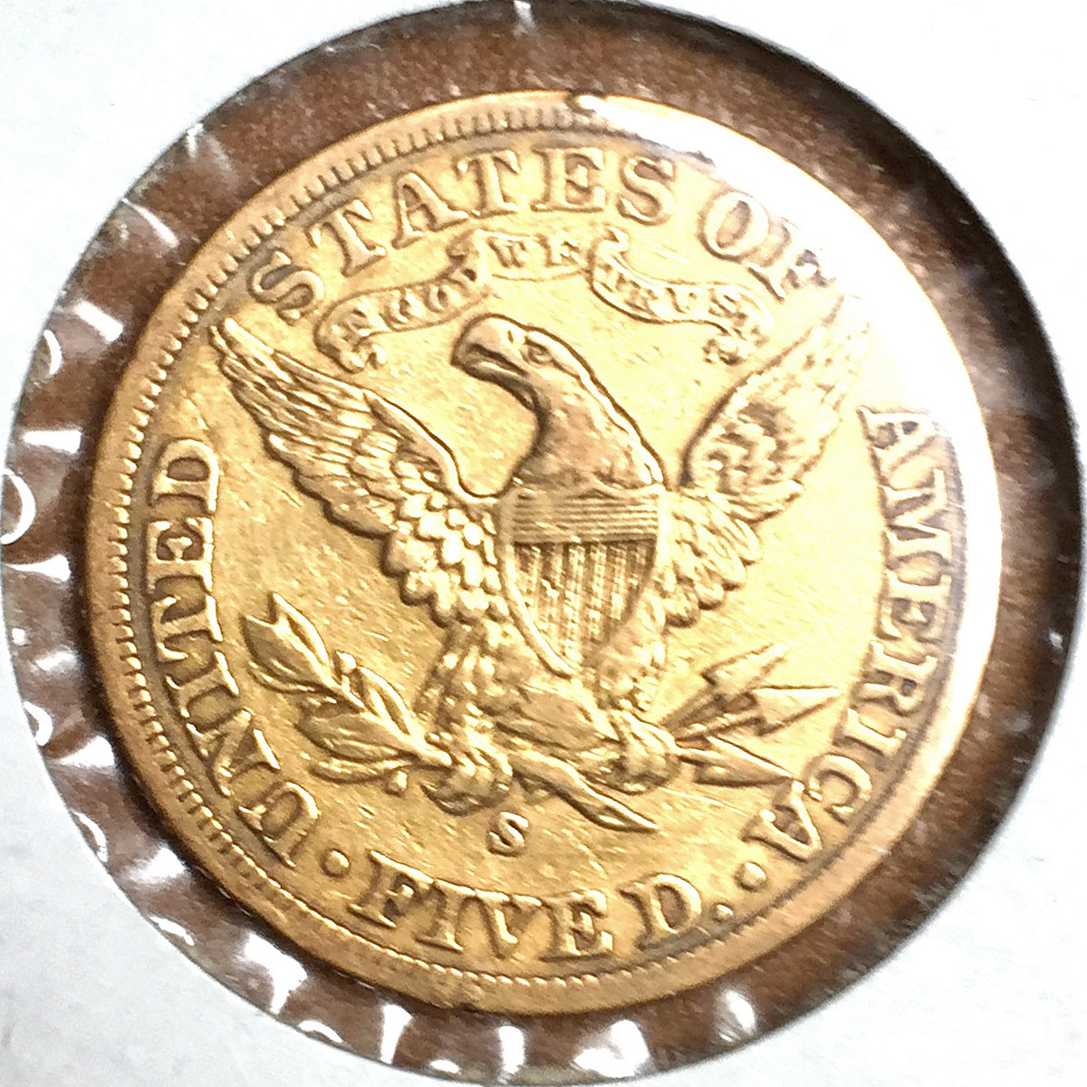 Left: 1900-S Half Eagle ($5 gold coin). Purchased to celebrate the owner's