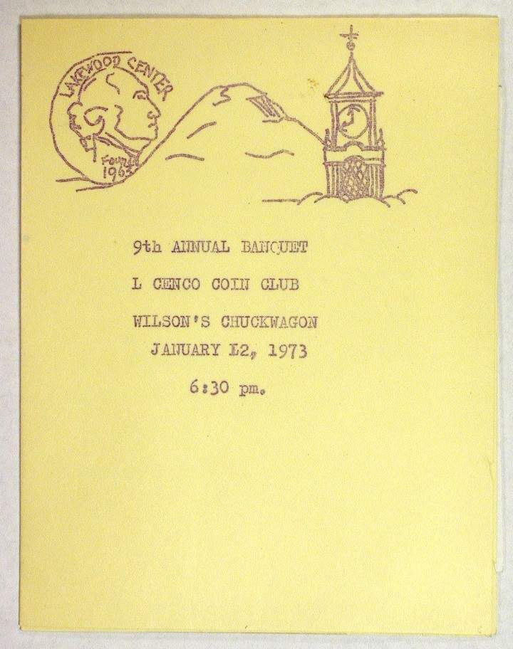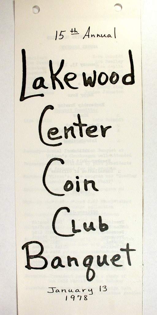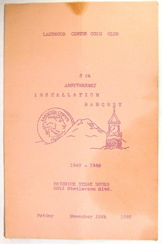 The TLCC Memorabilia CatalogPage P2 - Lakewood Center Coin Club Banquet Programs (pre-merger) -Index | Previous Page| Next Page Click on the thumbnail images for a larger version. |
