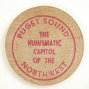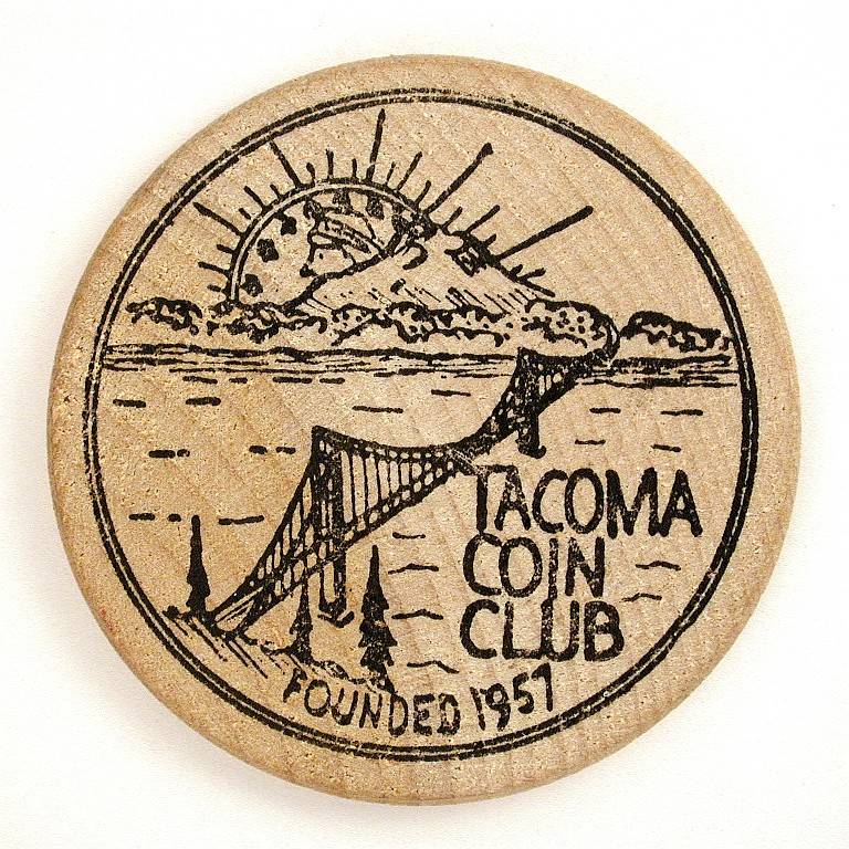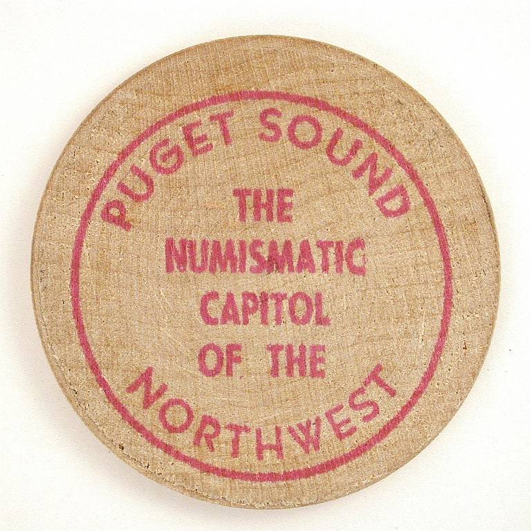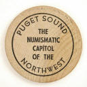 S59-1a wooden nickel, 38 mm Green obverse, black reverse - 2 known 300 of these were made in various colors and handed out at the Portland, Oregon ANA Anniversary Convention. |
