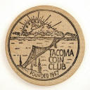 (Red color - item not in club collection)S59-2c wooden nickel, 37 mm, obverse same as S59-2a, with Indian on reverse (similar to S72-1) 2nd Annual March banquet, Tacoma, Washington 1 known, discovered by a family in Oregon City, OR. |