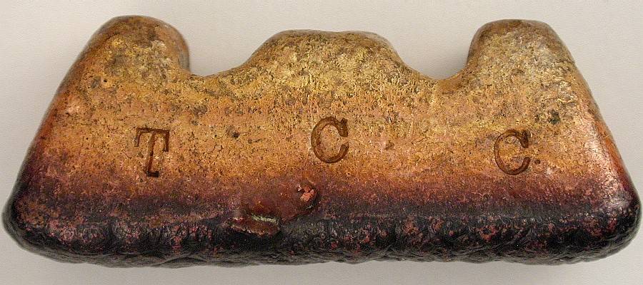 ![]() 1959S59-3 TCC copper ingot, 48 x 19 x 15 mm (approx) Number 20 of 25 made; the 2nd known example; shown at Aug. 2009 meeting. |