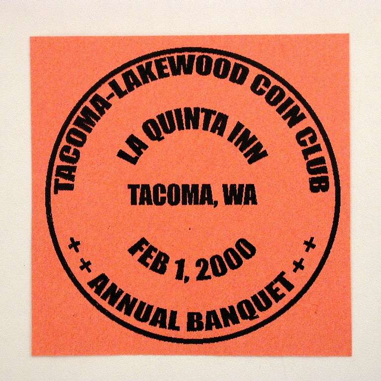 S00-1 banquet favor with 2000-P Massachusetts State Quarter in a 2 x 2 inch flip with a 1¾ inch square insert TLCC Annual Banquet, February 1, 2000, Tacoma, Washington |
