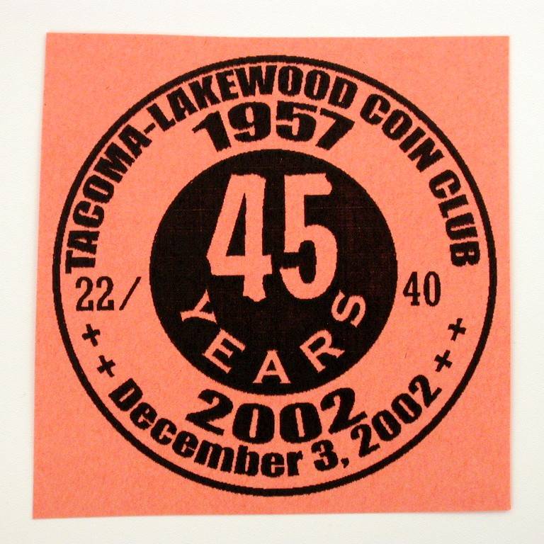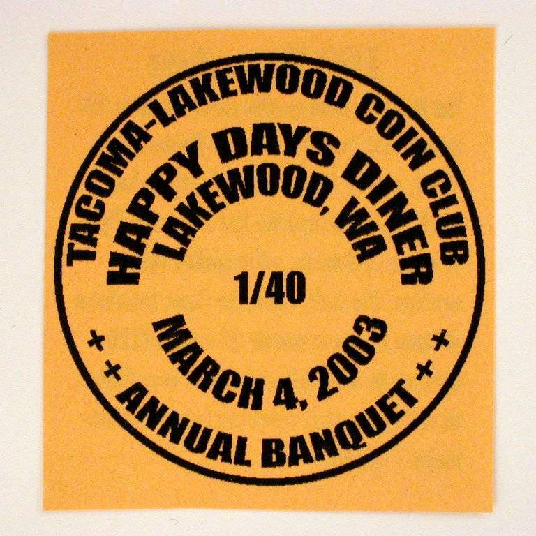 S03-1 banquet favor with 2003 Silver Eagle in a 2 x 2 inch flip with a 1¾ inch square insert TLCC annual banquet, March 4, 2003, Lakewood, Washington (Happy Days Diner) |
