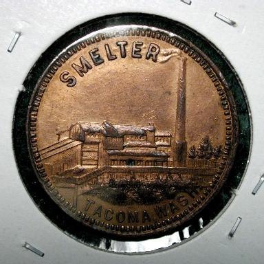 1934 Tacoma "Souvenir" medal depicting Mt. Rainier on the obverseand a Tacoma smelter on the reverse.