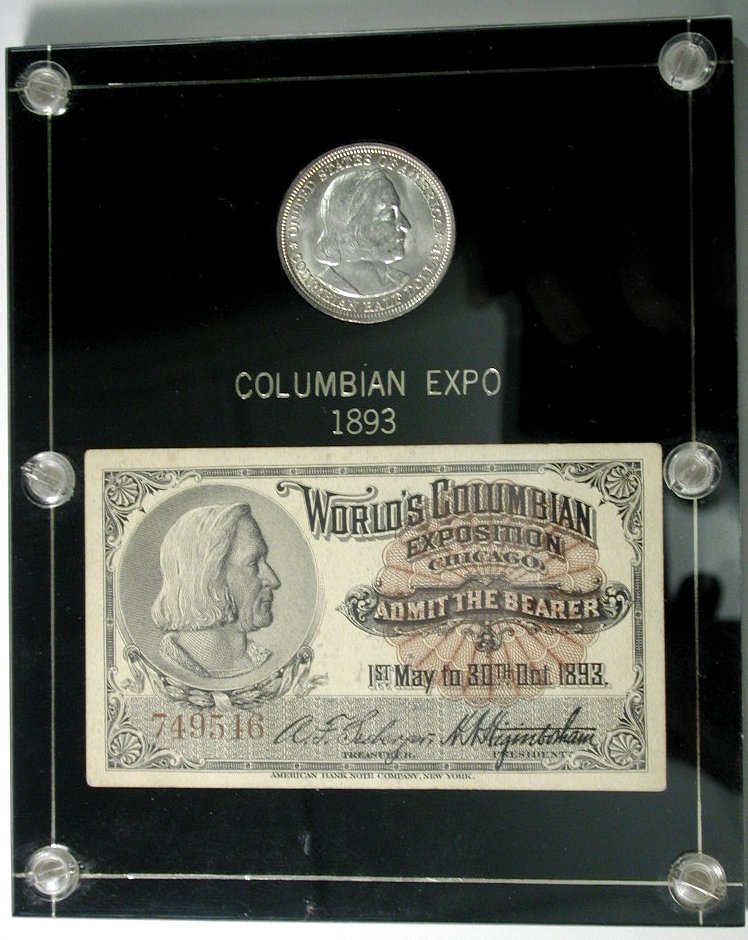 Left: 1792 Birch Cent Copy from Gallery Mint. Right: World's Columbian Exposition (1892) coin and admission ticket.
