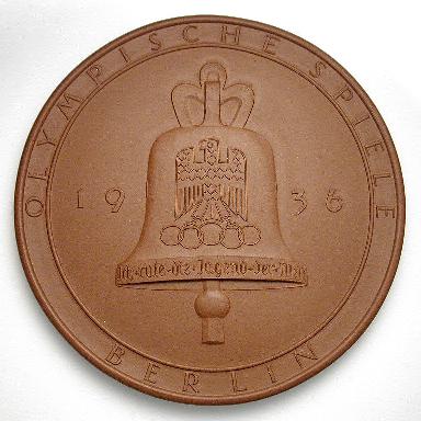 Left to right: large size ceramic medal from 1936 Berlin Olympics, 1983 ANS medal.