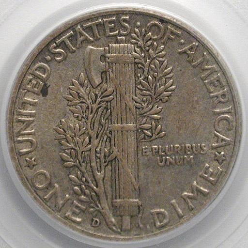 Left to right: 1942/1-D Mercury Dime PCGS XF-40, 1910-D Indian $10 gold piece, PCGS MS-63.