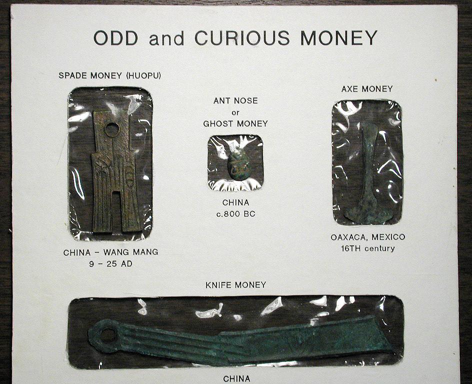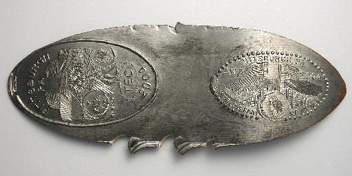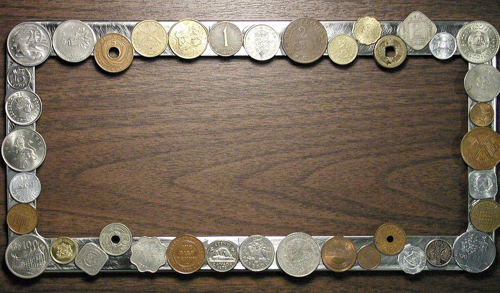 Left to right: License plate frame with coins attached!, unusual double elongated from ANA Pittsburgh convention, odd and curious money display.