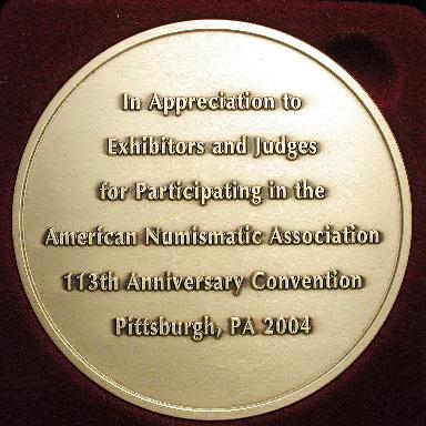 Left to right: Lincoln Cathedral bronze medal, ANA 2003 Pittsburgh convention exhibitors and judges medal.