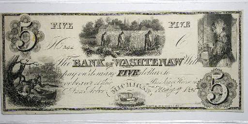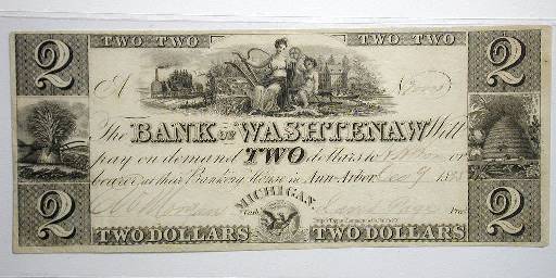 Left: Bank of Washtenaw, Michigan $2 and $5 notes.