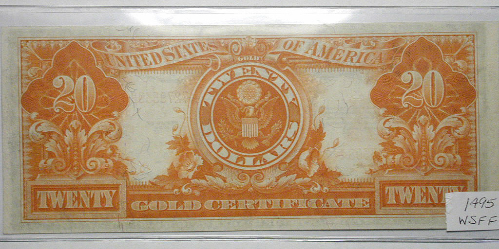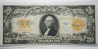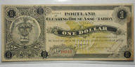 Top: 1907 Portland Clearing House Assoc. $1 note with lion. Bottom: 1922 US $20 gold certificate.