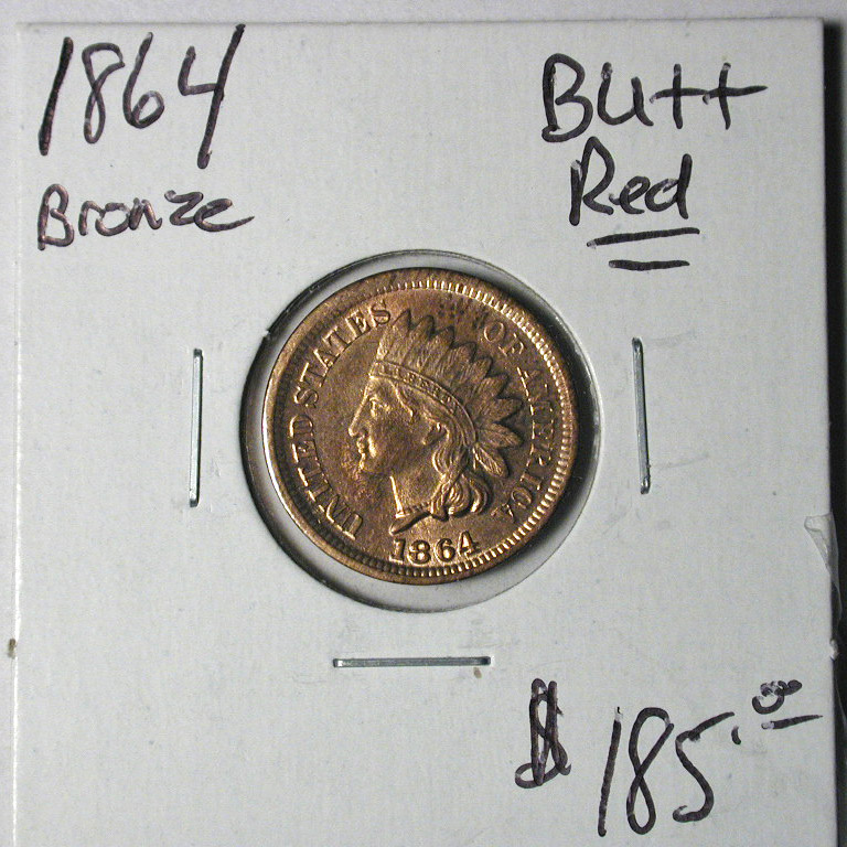 Left: 1864 BU++ Red Indian Head Cent, but it could be interpreted to read something else!!