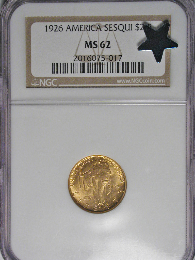 Left: 1926 Sesquicentennial $2.50 gold coin, NGC MS62 with "star."
