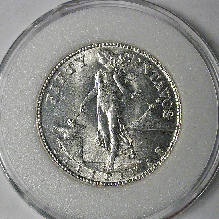 Right: 1944 Philippines 50 centavos coin, during period of US control.