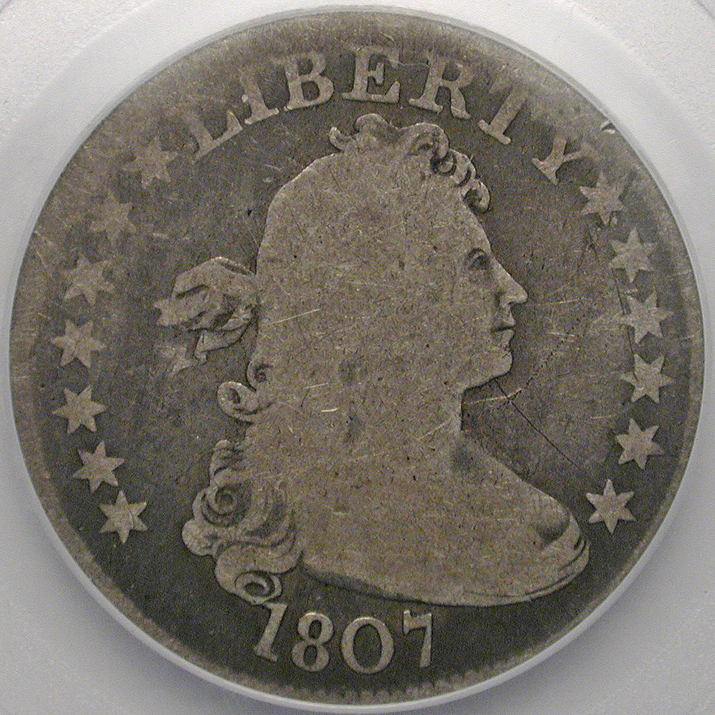 Left: 1807 Quarter, PCGS G06. Right: 1861-O Half Dollar, SS Republic shipwreck effect.