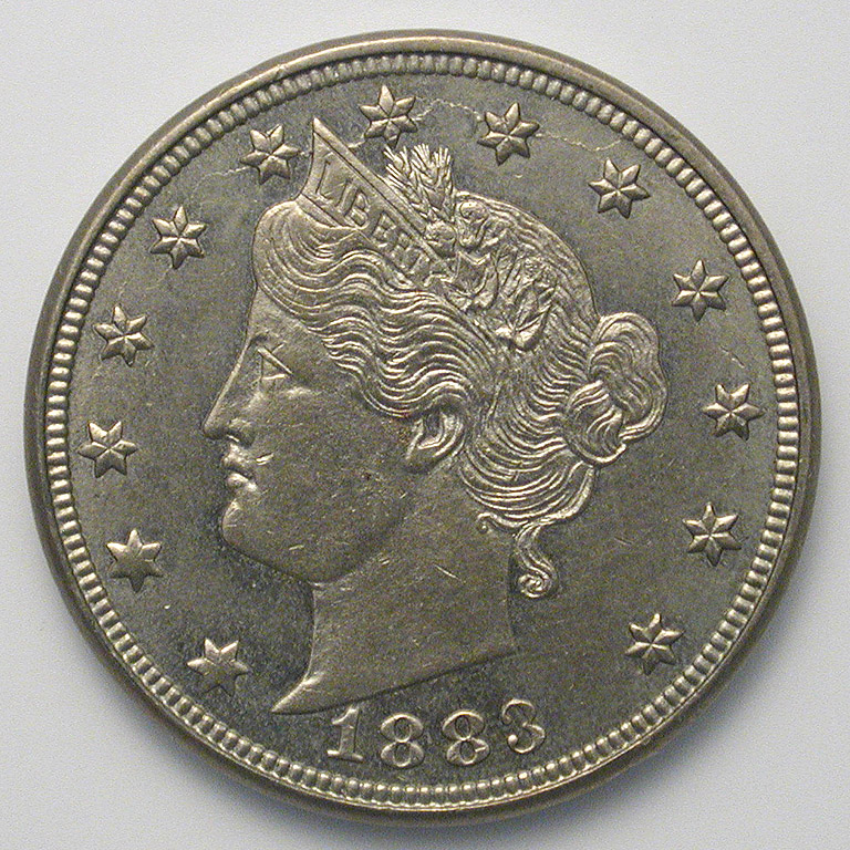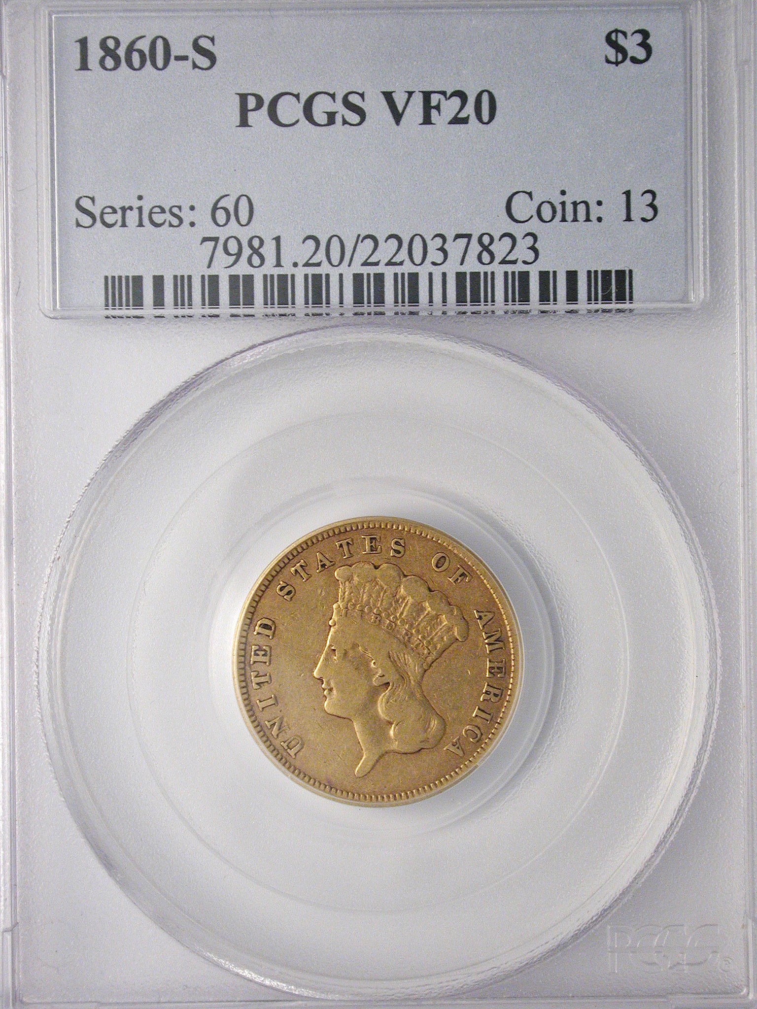 Left: 1883 Liberty Nickel "Without Cents." Right: 1860-S $3 Gold Piece, PCGS VF20.