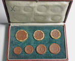 Left: "Proof" set of German porcelain notgeld. Center: Euro coin set from Ireland. Right: Thai coin set.