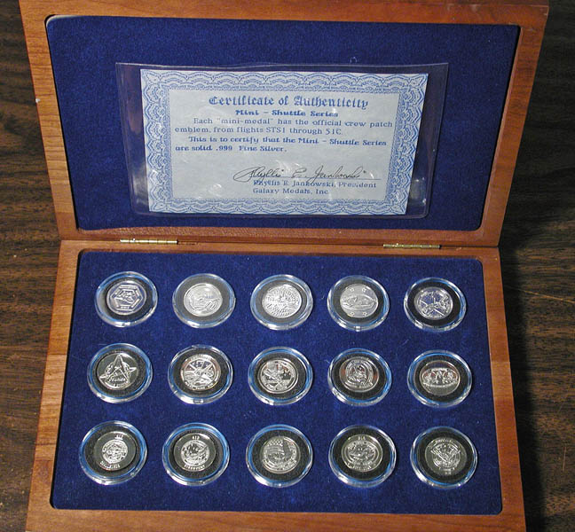 Center: Space Shuttle silver "mini-medal" series from Galaxy Medals.