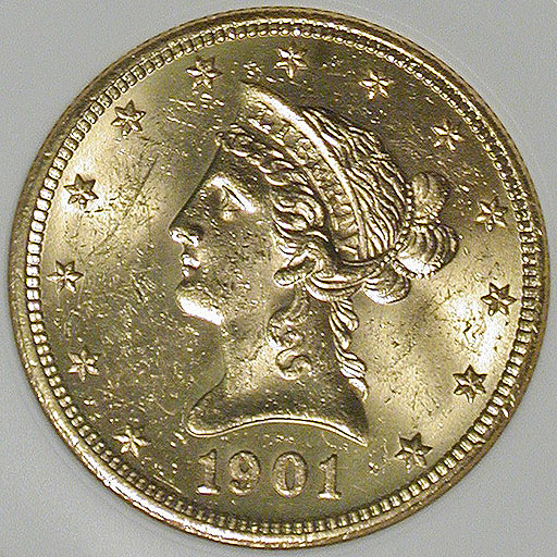 Left: 1901-S $10 Gold Coin (Eagle), ANI MS-62.