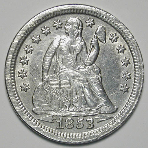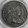 Left: 1801 Silver Dollar, PCGS AU-50. Right: 1853 with arrows dime.
