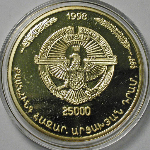 Left: Nagurno-Karabahk 25,000 drams fantasy coin.
