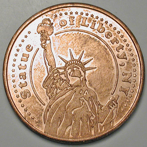Left: Mexican 1863-1867 Type Set of Maximilian. Right: Souvenir - Same thickness of copper as the Statue of Liberty.