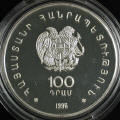Left: 1864 Nova Scotia half cent, PCGS MS-63BN (Brown). Right: Armenian coin commemorating 1996 XXXII Chess Olympiad.