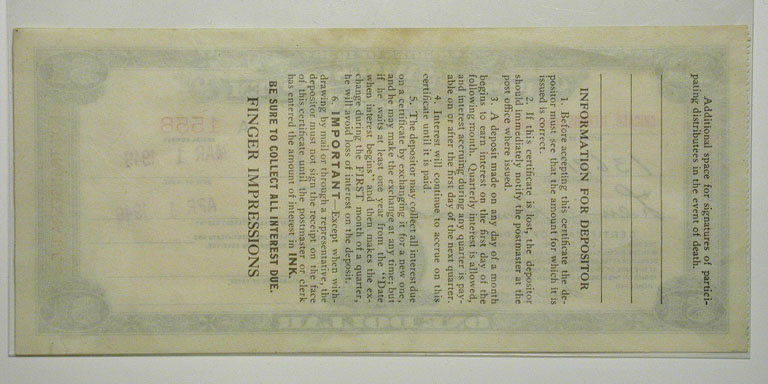 Top: Postal Savings System $1 Certificate of Deposit dated 1949.