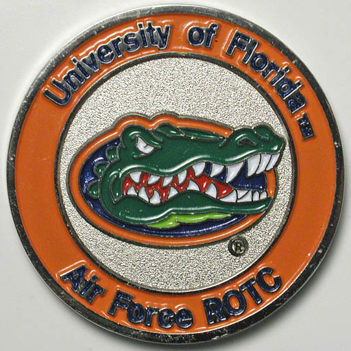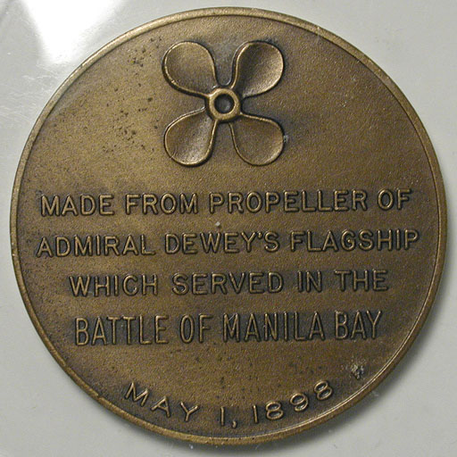 Left: University of Florida Gators Air Force ROTC "coin." Right: U.S.S. Olympia relic medal made from propeller of ship; Battle of Manila Bay, 1898.