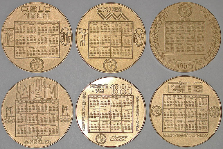 Norwegian Ski Federation calendar medals, 1981-1986.