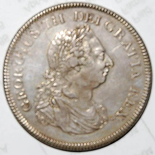 Left: Unusual "Five Shilling Dollar" Bank of England token dated 1804.