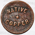 Right: J.W. Little, La Touche, Alaska 12 1/2 cent trade token made of "native copper."
