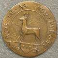 Left: 1837 Feuchtwanger Cent pattern. Right: Medal issued for 1927 ANA convention in Hartford.