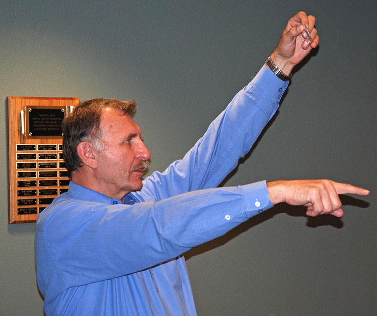 Left: Rick Schulz presented "All I know on the topic of two cent pieces."
