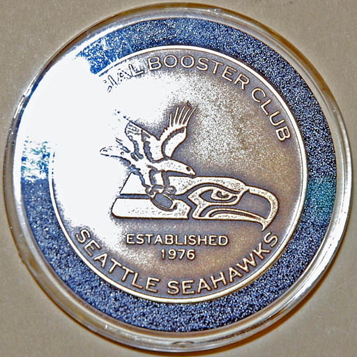 Right: Seattle Seahawks Booster Club "12th Man" medallion.