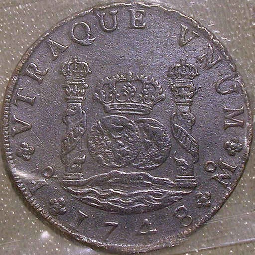 Lower Left: 1748 Mexican 8 Reales (Piece of 8) from the shipwreck Le Auguste Bordeaux.