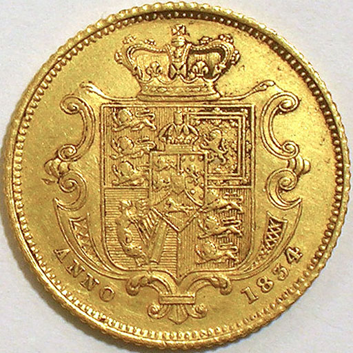 Upper Left: 1834 British Half Sovereign (gold).