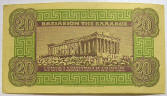 Upper: 1940 Greek 20 drachma banknote (Parthenon on back).