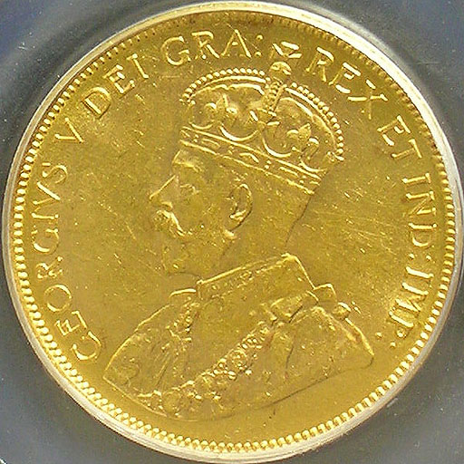 Left: 1912 Canadian $5 gold coin, PCGS MS63.