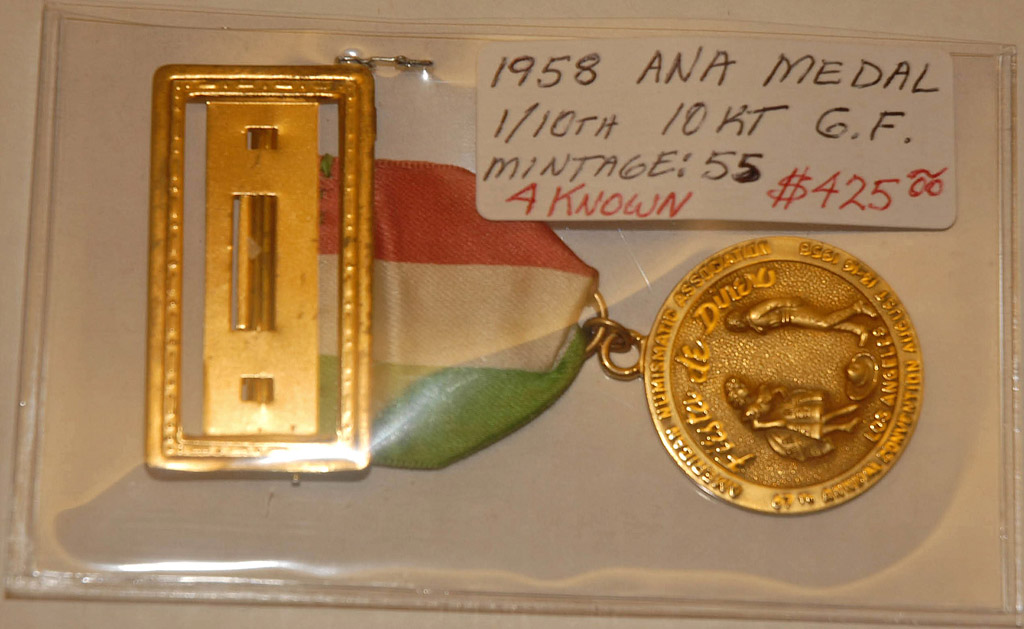 Left (2): 1958 ANA convention badge/medal – Fiesta de Dinero.