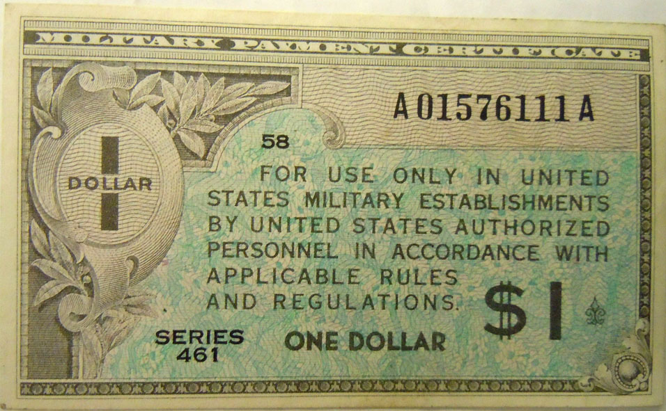 Right: U.S. Military Payment Certificate, $1, Series 461.
