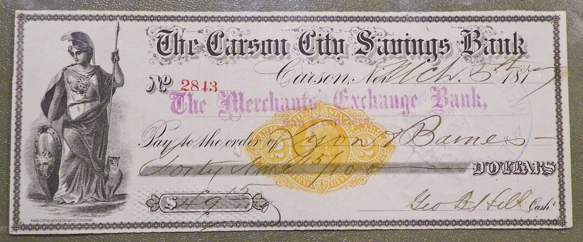 Left: 1877 The Carson City Savings Bank check.